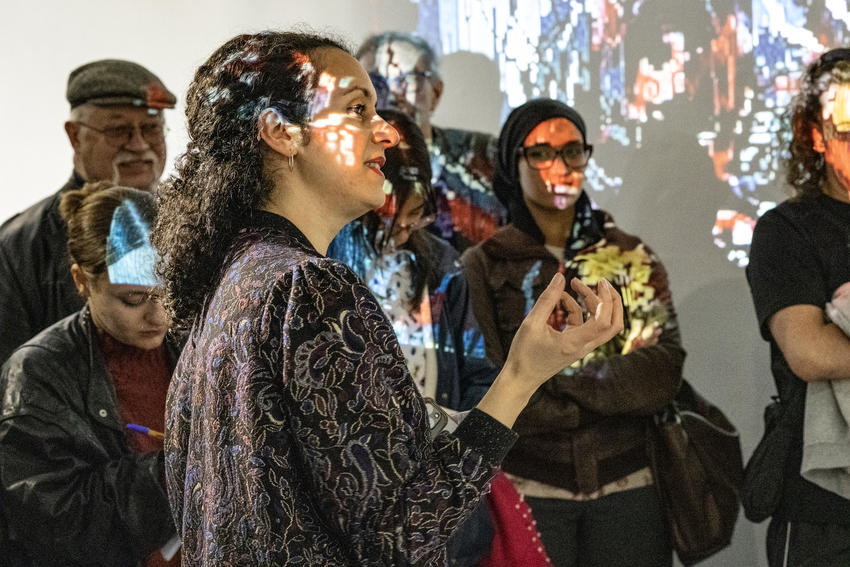 , souligne Kahena Sanaâ, artiste et enseignante-chercheuse en arts, pratique et théorie au département Arts visuels de la Faculté des arts de l’Université de Strasbourg, dont l’idée d’exposition nait en 2024 en plein génocide* à Gaza. Il y avait un déni des médias et des politiques sur ce qui se passait. L’exposition vise à extraire notre regard du régime de l’instantanéité de l’actualité médiatique, qui risque de normaliser l’inacceptable, pour reconduire les événements dans un espace de réflexion, celui de l’art.